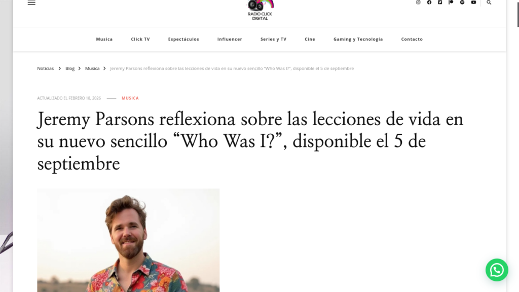 Radio Click Digital Reviews Jeremy Parsons’ “Who Was I?” https://www.radioclickdigital.com.ar/jeremy-parsons-reflexiona-sobre-las-lecciones-de-vida-en-su-nuevo-sencillo-who-was-i-disponible-el-5-de-septiembre/#google_vignette