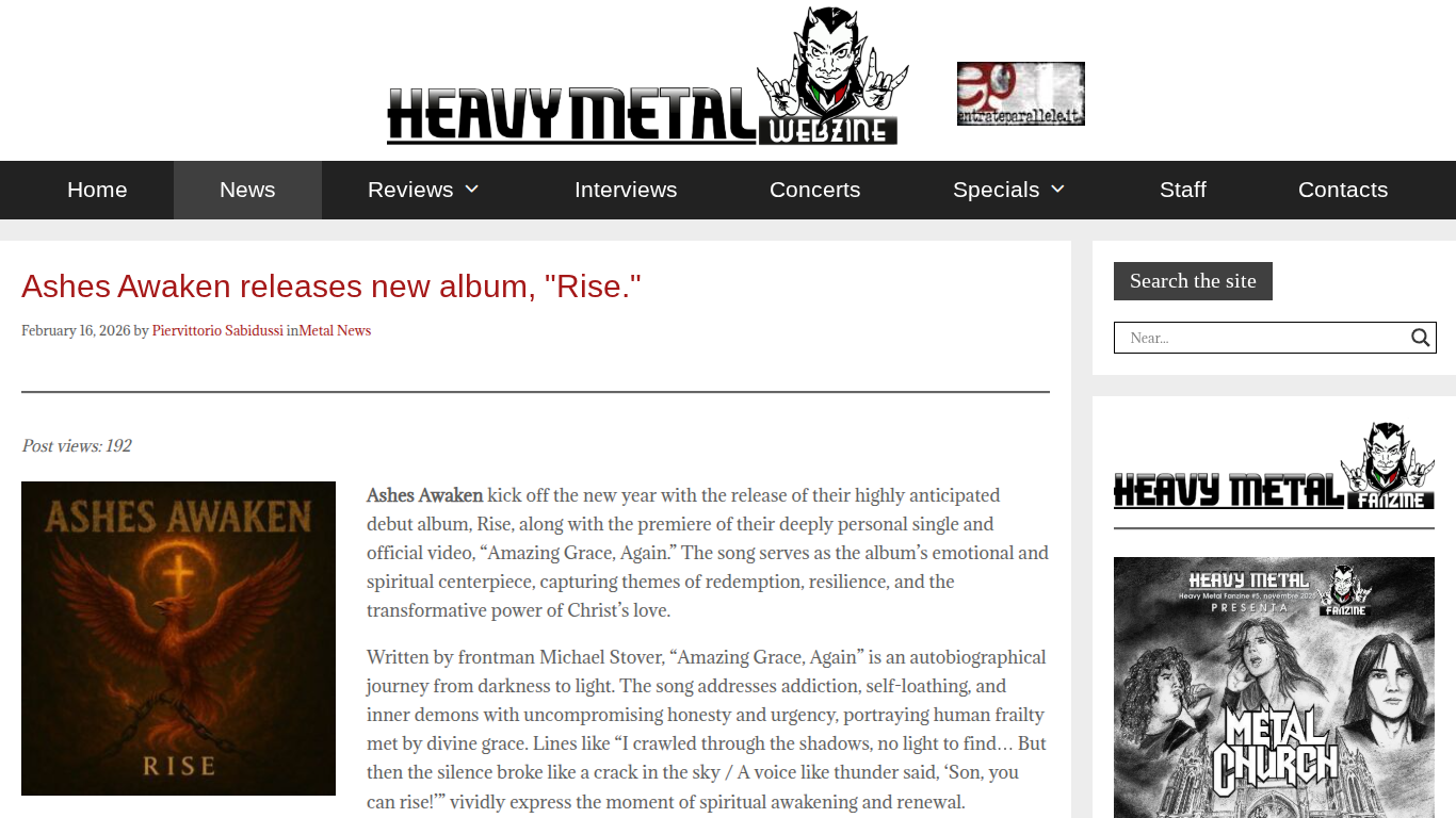 Heavy Metal Webzine Features Ashes Awaken’s “Rise” LP