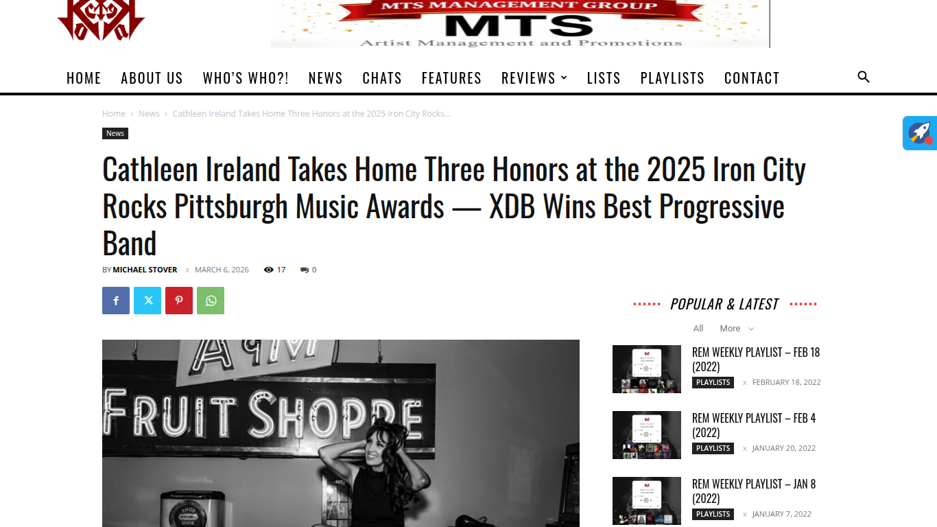 Rock Era Mag Features Cathleen Ireland, XDB https://rockeramagazine.com/cathleen-ireland-pittsburgh-awards/