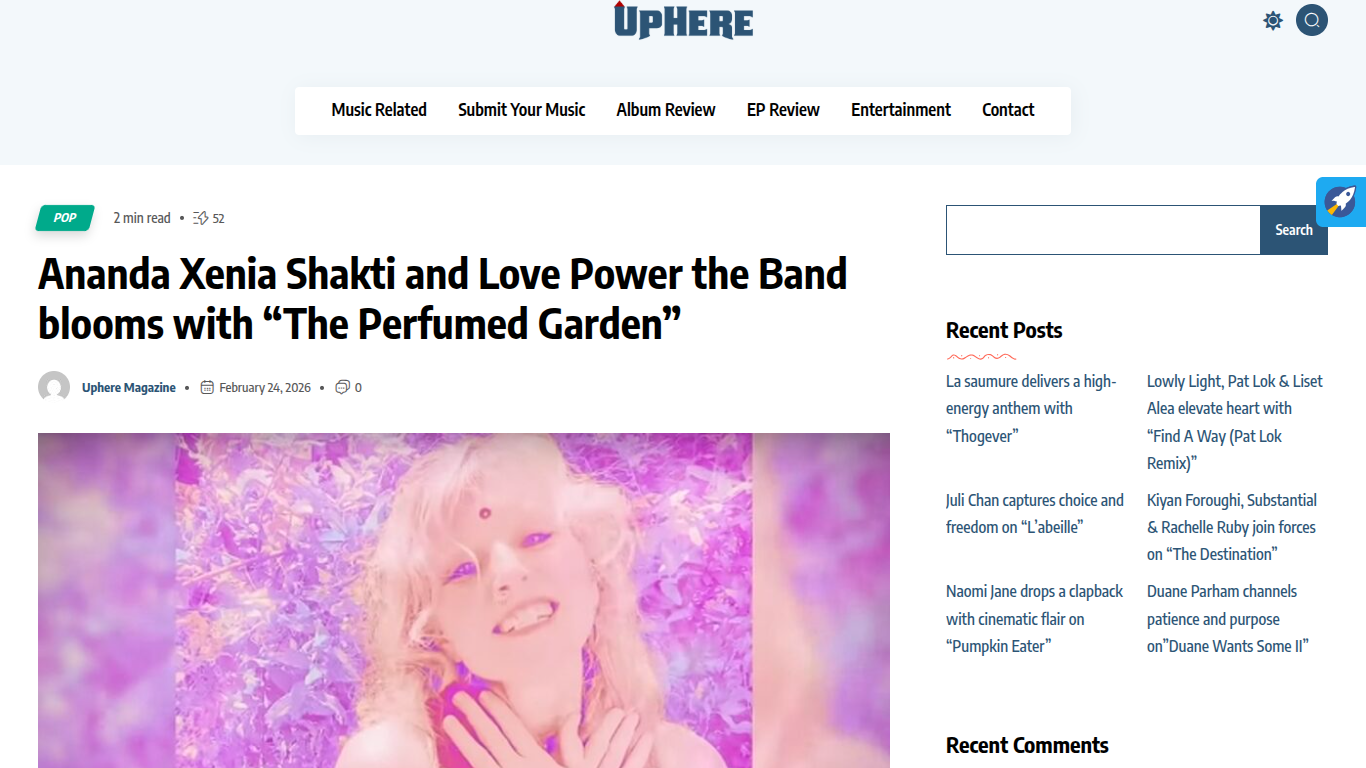 Up Here Magazine Reviews Ananda Xenia Shakti’s “The Perfumed Garden” https://upheremagazine.com/ananda-xenia-shakti-and-love-power-the-band-blooms-with-the-perfumed-garden/
