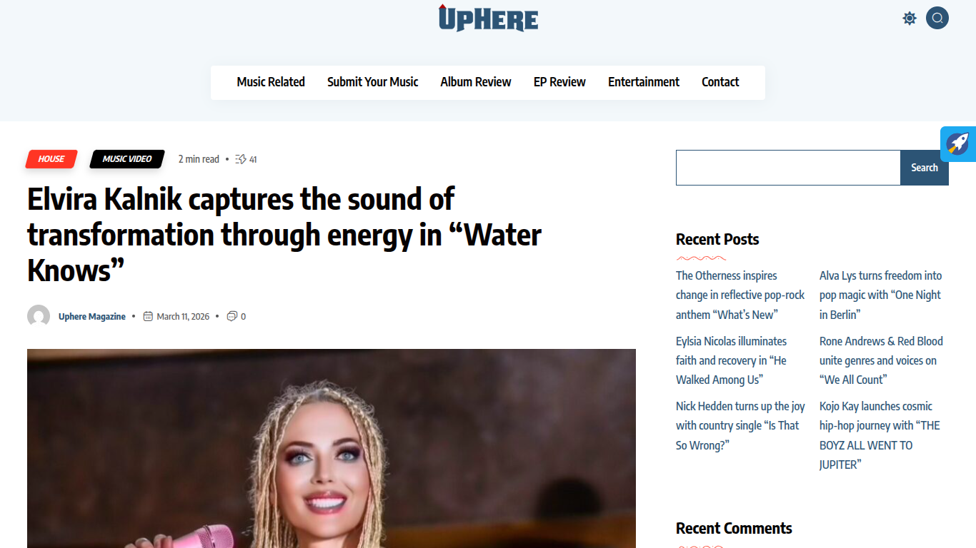 Up Here Magazine Reviews Elvira Kalnik’s “Water Knows” https://upheremagazine.com/elvira-kalnik-captures-the-sound-of-transformation-through-energy-in-water-knows/