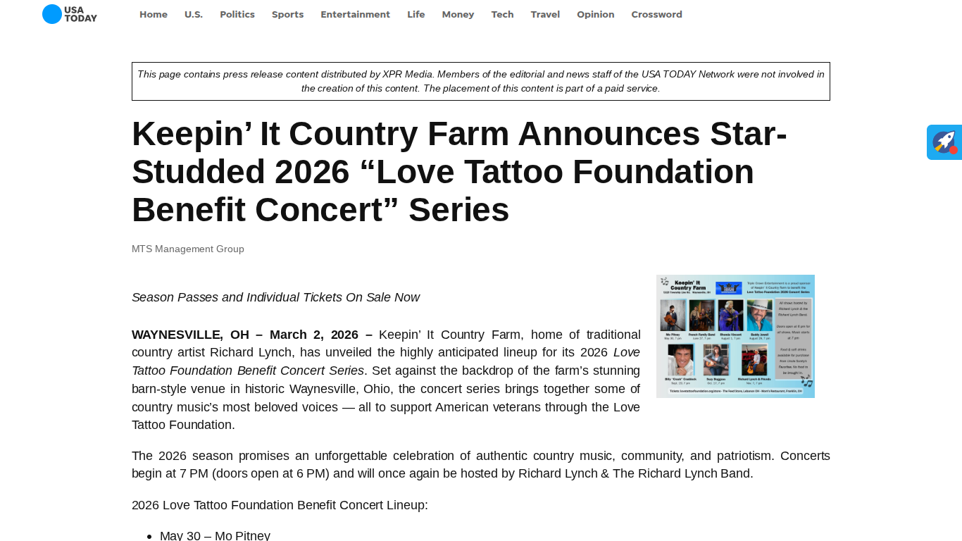 USA Today Features Keepin’ It Country Benefit Concert Series https://www.usatoday.com/press-release/story/27448/keepin-it-country-farm-announces-star-studded-2026-love-tattoo-foundation-benefit-concert-series/